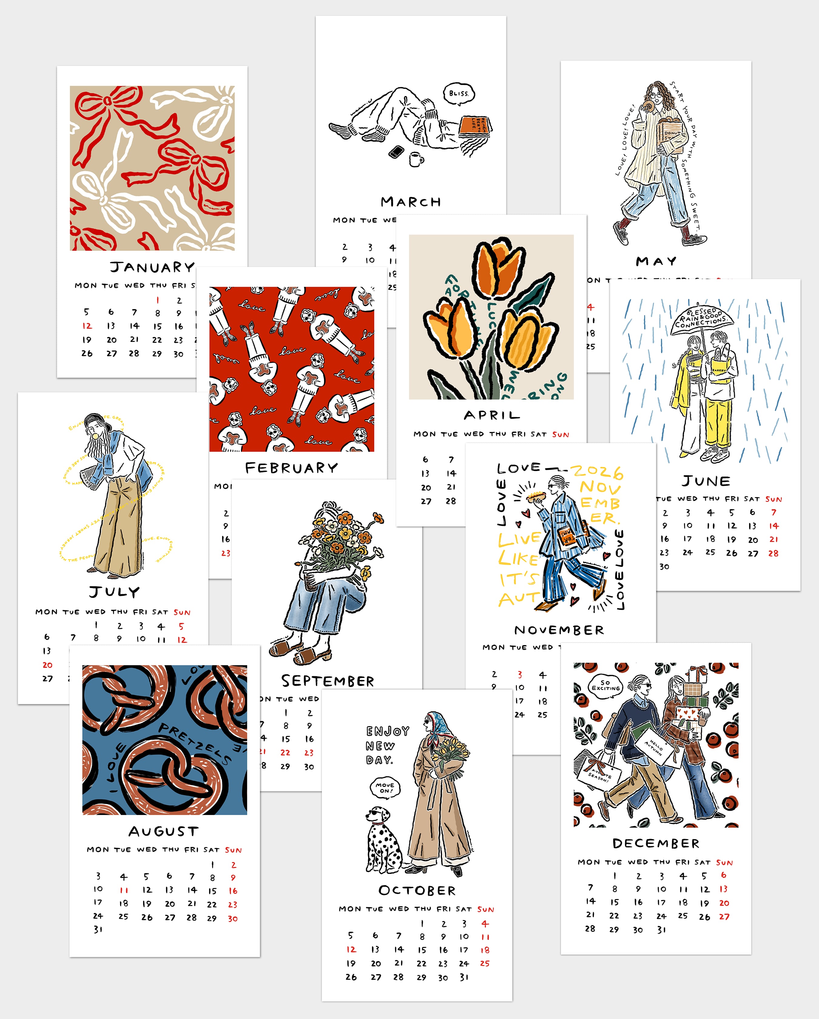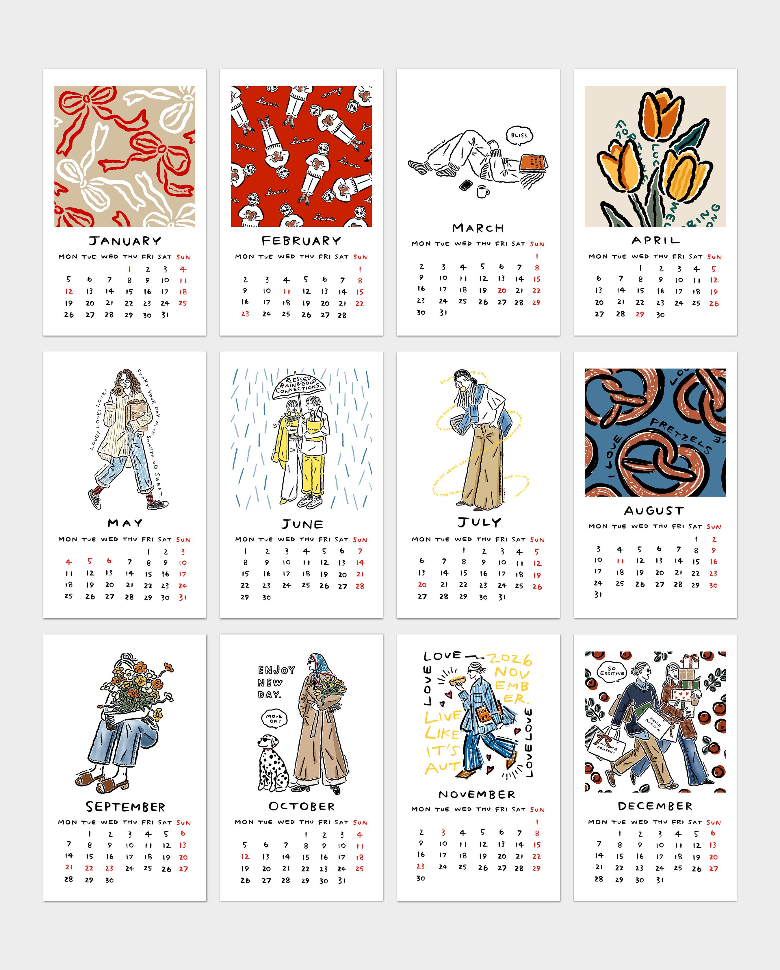 季節を感じられるイラストを詰め込んだカレンダーです。