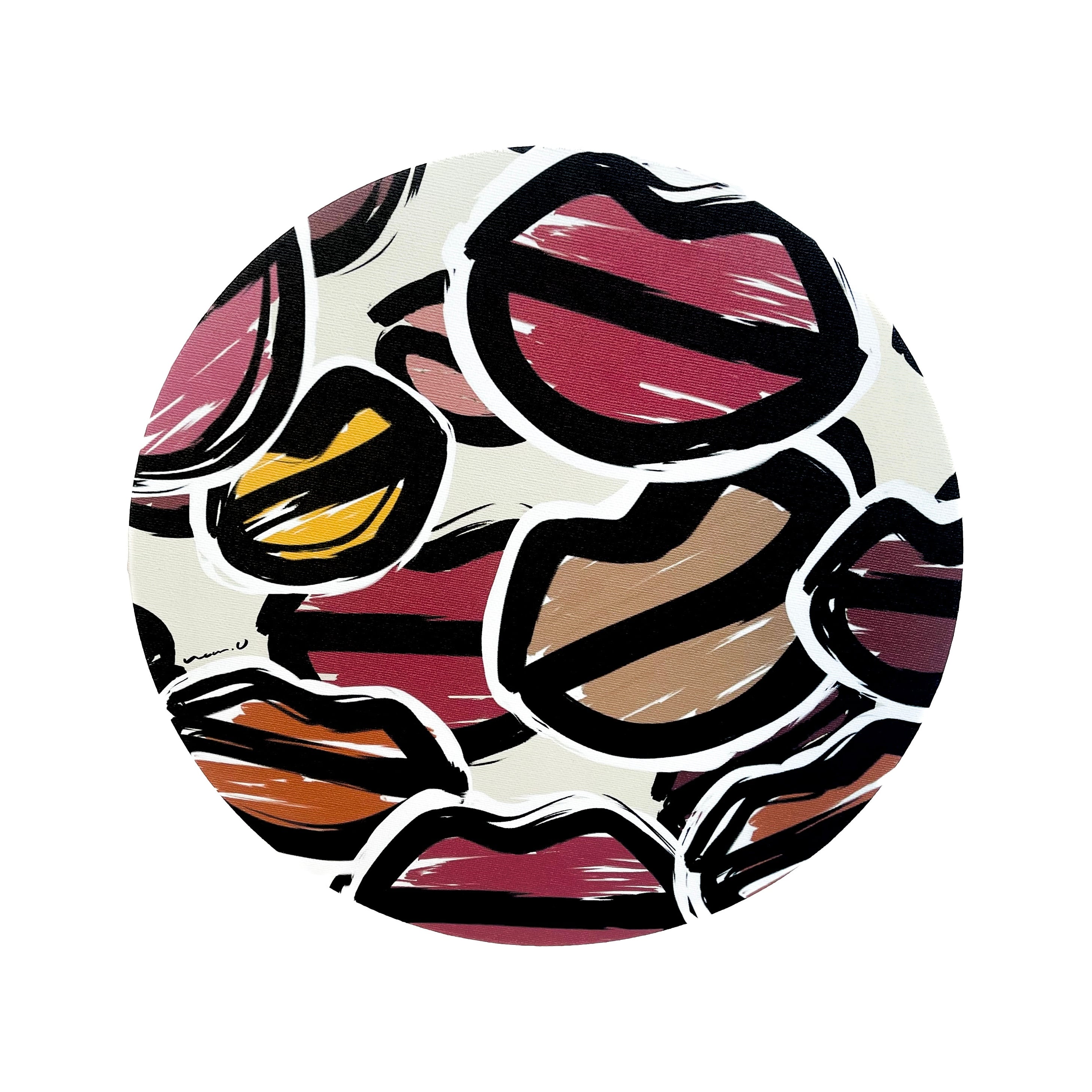 くちびるで埋め尽くされた丸型キャンバスボード。